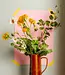Mooie karaf gemaakt van keramiek in de vintage kleuren van goudbruin, okergeel en een handgeschilderd diepbruin detail. Voeg stijl toe aan je tafelsetting met deze te leuke karaf, perfect voor limonade, water of een lekker sapje én ook te gebruiken als bloemenvaas!