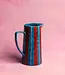 Ontdek deze karaf gemaakt van keramiek in de stoere kleuren van lapislblauw, brievenbusrood en een handgeschilderd wit detail. Voeg stijl toe aan je tafelsetting met deze te leuke karaf, perfect voor limonade, water of een lekker sapje én ook te gebruiken als bloemenvaas!